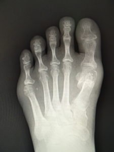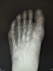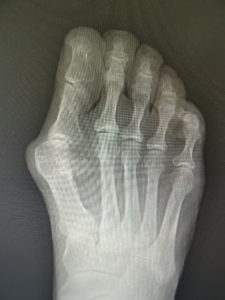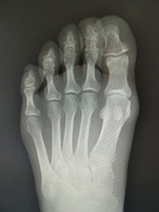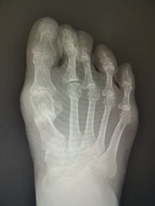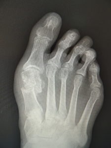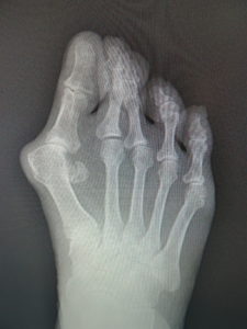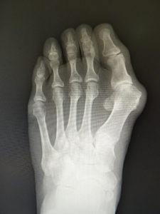 外反母趾は、自然経過で治癒に向かうことは稀で、次第に重症化し、突出部の痛みや胼胝で悩まされ、靴が合わなくなって不便な思いをします。また母趾の屈曲、伸展が不自由で、運動が困難になることが苦痛です。